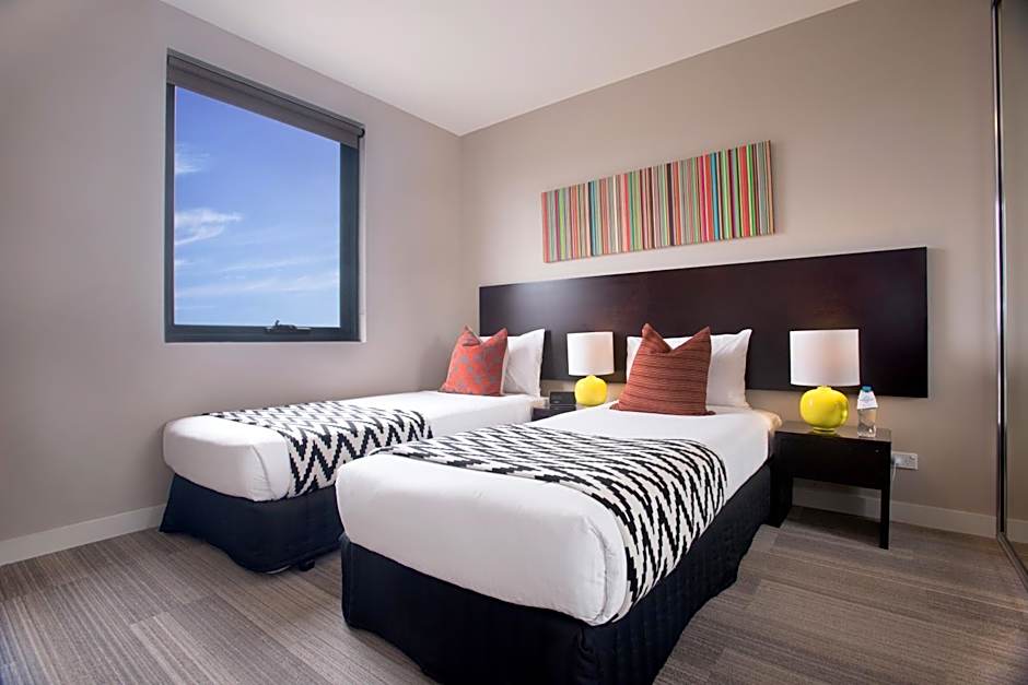 This Two Bedroom Apartment provides a master bedroom with its own private bathroom and LCD Smart TV, while the second bathroom contains a shower over bathtub and laundry facilities. The second bedroom can be configured as either a king or twin beds. A fully equipped kitchen featuring an oven, cooktop, full-size fridge and dining table means meals can be prepared and enjoyed in the apartment. The living room contains a Smart TV with Netflix access.